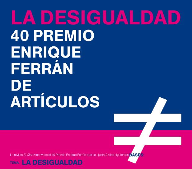 La revista de pensamiento y cultura El Ciervo convoca este año el 40º Premio Enrique Ferrán de artículos periodísticos sobre el tema La desigualdad.