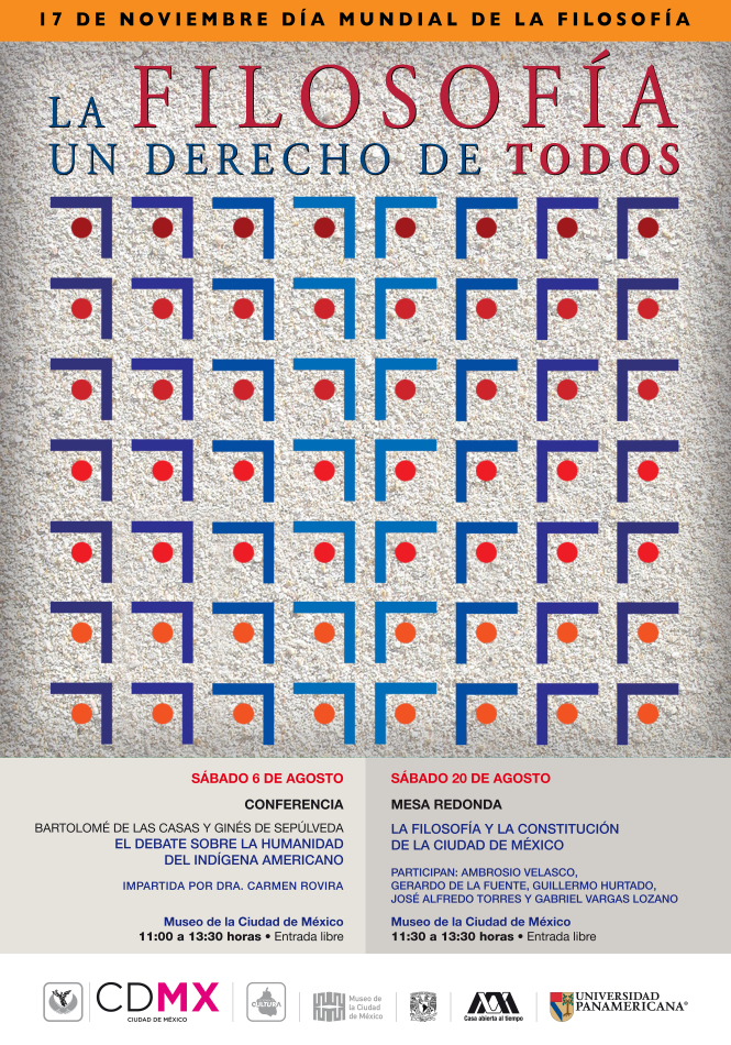 Sábado 20 de agosto mesa redonda: LA FILOSOFÍA Y LA CONSTITUCIÓN DE LA CIUDAD DE MÉXICO. Participan: Ambrosio Velasco, Gerardo de la Fuente, Guillermo Hurtado y Gabriel Vargas Lozano.