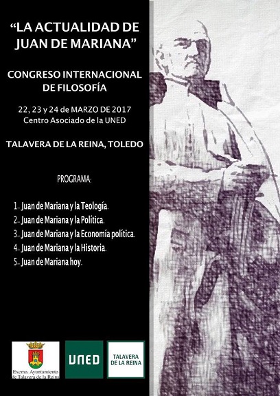 La figura y la obra del Padre Juan de Mariana (1536- 1623), jesuita, concita un variado repertorio de temas que abarcan la Historia, la Sagrada Escritura, la reflexión política y moral, cuestiones económicas y sociales, amén de diversos asuntos de carácter eclesiástico. Queda por tanto más que justificada la convocatoria de un Congreso que permita resaltar el amplio espectro de su pensamiento, aunque con ello reivindiquemos a la vez otra importante cuestión, la de hacer sacar a la luz la filosofía que se ha escrito en español.