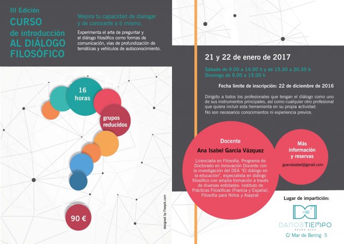 Es ya la tercera edición del Curso de diálogo filosófico, con el que pretende dar a conocer innovaciones pedagógicas basadas en el ejercicio de la Filosofía y su más clásica herramienta: el diálogo.