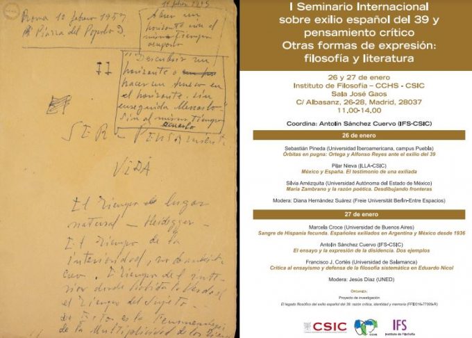 I Seminario internacional sobre exilio español del 39 y pensamiento crítico. Otras formas de expresión: filosofía y literatura