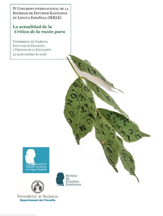 Por la presente, se abre la convocatoria de presentación de originales para el IV Congreso internacional de la Sociedad de Estudios Kantianos en Lengua Española (SEKLE), que tendrá lugar en la Facultad de Filosofía y Ciencias de la Educación de la Universidad de Valencia del 15 al 19 de octubre de 2018. Entre los ponentes confirmados se hallan Adela Cortina (Valencia), Claudio La Rocca (Pisa) y Onora O’Neill (Cambridge). El lema del congreso será “La actualidad de la Crítica de la razón pura”. No obstante, los originales relacionados con cualquier aspecto del pensamiento kantiano, así como con sus fuentes y su recepción, serán bienvenidos. Los autores doctores enviarán título y resumen de la ponencia (hasta un máximo de 100 palabras), junto con sus datos institucionales, hasta el 15 de enero de 2018 a la dirección de correo electrónico sekle.kant4@gmail.com. Los autores no doctores remitirán también el texto completo. Los textos estarán redactados de manera preferente en castellano, pero se admitirá igualmente originales en alemán o inglés. La comunicación de la aceptación tendrá lugar antes del 31 de marzo de 2018.