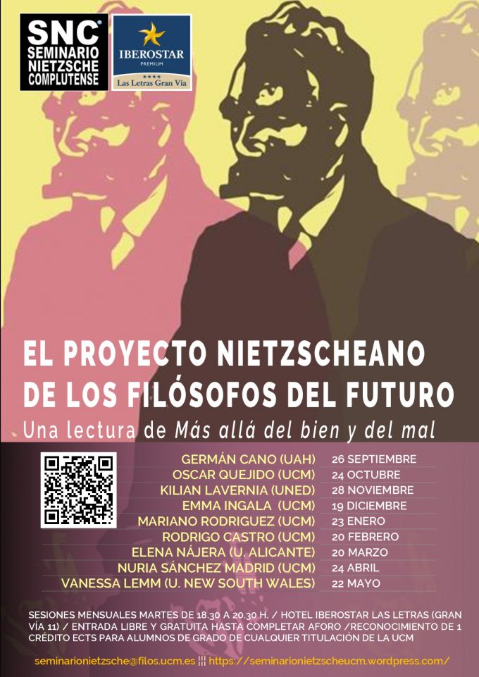 – «El proyecto nietzscheano de los filósofos del futuro» (Ciclo de lecturas de Más allá del bien y del mal, de F Nietzsche) , que se celebrará en el Hotel Iberostar Las Letras (Gran vía 11, Madrid)