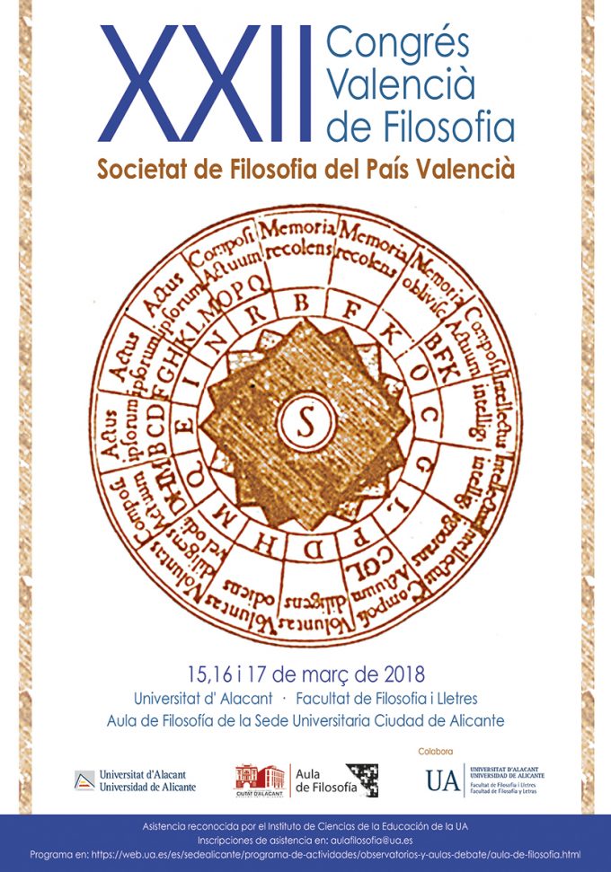 La Societat de Filosofia del País Valencià y todas las Universidades de la Comunitat Valenciana organizan el XXII Congreso Valenciano de Filosofía