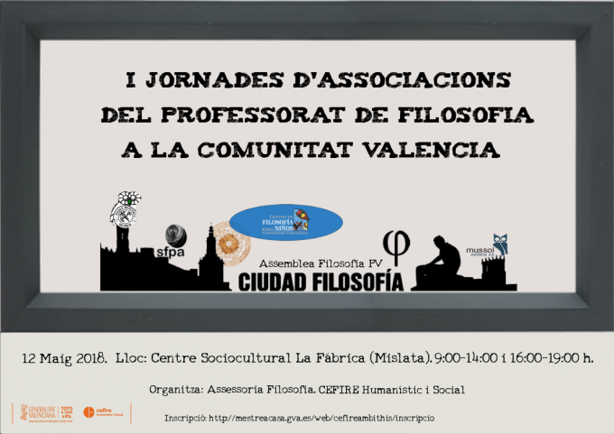 El sábado 12 de mayo se celebrará en Mislata (Valencia), una jornada de reunión y debate de todas las asociaciones filosóficas de la Comunidad Valenciana. El evento tendrá lugar en el Centre Sociocultural La Fábrica, a partir de las 9:00 Horas.