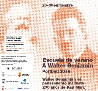La Assocoacoó Passatges de Cultura Contemporània organiza la Escuela de verano Walter Benjamín y el pensamiento marxista 200 años de Karl Marx, que se realizará del 28 al 30 de septiembre en Portbou. Dirigido por María Maïlat, antropóloga, escritora y profesora en el centro ARTEFA, exprofesora en la Universidad de París, París V y París VIII, y Pilar Parcerisas, presidenta de l’Associació Passatges de Cultura Contemporània.