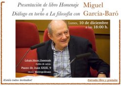 Se invita a la presentación de un nuevo libro en Homenaje a Miguel García-Baró, quien estará acompañado por profesores, compañeros, amigos y alumnos para tratar y conversar con él acerca de La filosofía.