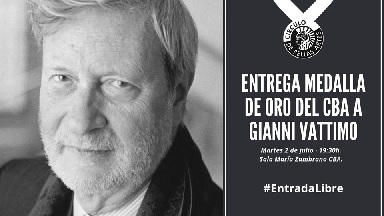 El filósofo Gianni Vattimo (Presidente de la Cátedra HERCRITIA) recibirá la Medalla de Oro del Círculo de Bellas Artes de Madrid, máximo galardón que otorga esta Institución, de manos de su Presidente, Juan Miguel Hernández León. El acto contará, además, con la presencia de algunos de los discípulos del filósofo italiano como: Teresa Oñate (Catedrática de Filosofía UNED; Co-directora de HERCRITIA), Daniel Mariano Leiro (Universidad de Buenos Aires), Jesús Lozano Pino (HERCRITIA) y Brais González Arribas (HERCRITIA).