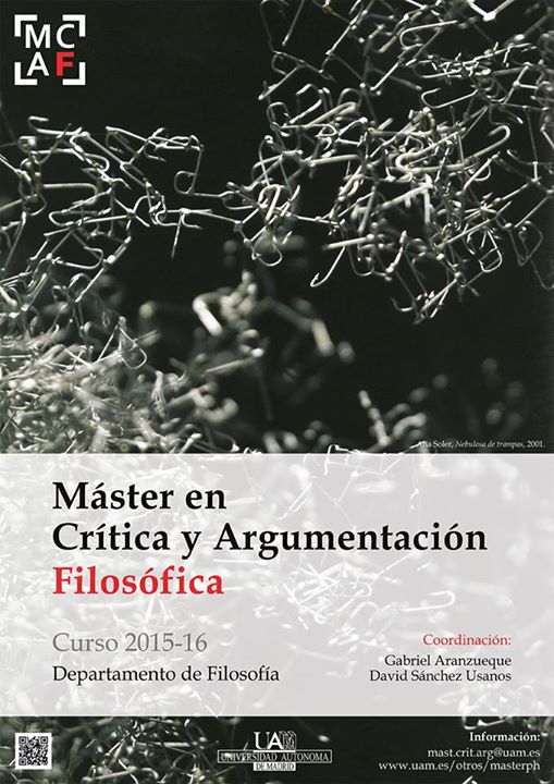 La aparición de nuevos retos y complejidades en el seno de la sociedad del conocimiento ha hecho que algunos de los rasgos característicos de la formación filosófica, como el pensamiento crítico y la capacidad de argumentación, sean especialmente valorados en el presente. La Universidad Autónoma de Madrid, recientemente reconocida como Campus de Excelencia Internacional, da respuesta a esta demanda al ofrecer, a los profesionales y estudiantes que lo deseen, la posibilidad de continuar sus estudios de Licenciatura o de Grado, o de mejorar su competencias laborales, realizando el Máster en Crítica y Argumentación Filosófica, cuya andadura se inició en el curso académico 2010-2011 y que prosigue su camino, en su quinta edición, durante el curso 2014-2015.