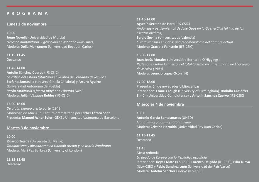 IV Simposio Internacional sobre pensamiento político del exilio español del 39. Críticas de la razón totalitaria»