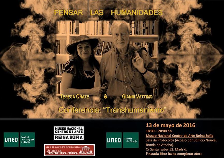 C. Conferencia: “Gianni Vattimo, Memoria de Umberto Eco” (Modera Teresa Oñate), día 14 de mayo en el Círculo de Bellas Artes de Madrid (tarjeta conferencia en PDF).