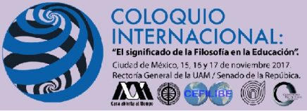 La Universidad Autónoma Metropolitana, Unidad Iztapalapa, el Centro de Documentación en Filosofía Latinoamericana e Ibérica, La Coordinación de la Licenciatura en Filosofía, la Asociación Filosófica de México y la Comisión de Enseñanza de la Filosofía de la Federación Internacional de Sociedades de Filosofía invitan a asistir al Coloquio Internacional «El significado de la Filosofía en la Educación», a celebrarse los días 15 y 17 de Noviembre en la Rectoría General de la Universidad Autónoma Metropolitana. Y el día 16, en el marco del coloquio, se celebrará el Día Mundial de la Filosofía en el Senado de la República.