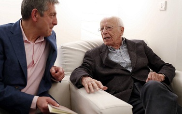 “Él es el autor. Este hombre ha inventado a Emilio Lledó”, proclamaba en voz bien alta este martes el propio Emilio Lledó (Sevilla, 1927), filósofo, uno de los pensadores españoles contemporáneos más importantes, al término la conferencia de prensa en la que se acababa de presentar en Madrid Palabras en el tiempo, de Cipriano Játiva. A él se refería Lledó y al libro que recoge en forma de diccionario su pensamiento, a base de textos escogidos del maestro, en torno a palabras ordenadas alfabéticamente, precedidas cada una por una introducción de Játiva y encabezado todo ello por una introducción que es, en realidad, “una auténtica monografía”, ha dicho Lledó durante la presentación.