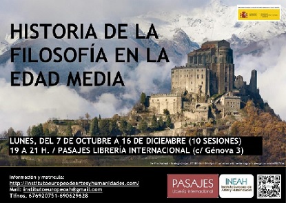 El Instituto Europeo de Artes y Humanidades (INEAH) anuncia que está abierto el plazo de matrícula para el curso ‘Historia de la Filosofía en la Edad Media’. Este curso pretenden recorrer la Historia de la Filosofía desde la Antigüedad hasta nuestros días, se centra en este cuatrimestre en un largo período, aparentemente oscuro, y bastante desconocido: la Edad Media. Más allá de los estereotipos de un pensamiento único que se producía en el ámbito de la Iglesia, la Edad Media fue un periodo intenso, y plagado de acontecimientos fundamentales que, más allá de la Teología, han llegado hasta nuestros días. Un período que va desde los convulsos momentos que siguieron a la caída del Imperio Romano, pasando por la convivencia y fusión con las culturas árabe y la judía, -de las que se puede dar buena cuenta en España-, hasta el florecimiento de la cultura renacentista.