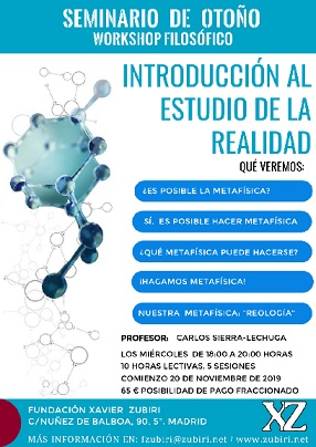 La Fundación Xavier Zubiri de Madrid organiza el seminario ‘Introducción al estudio de la realidad’. Éste está dirigido a filósofos y científicos, así como a toda persona interesada en hacer metafísica.