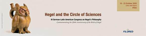 Conferencistas confirmados hasta el momento / To date confirmed speakers : Agemir Bavaresco (Porto Alegre), Mariano de la Maza (Santiago de Chile), Jorge Aurelio Díaz (Bogotá), Félix Duque (Madrid), Héctor Ferreiro (Buenos Aires), Luis Eduardo Gama (Bogotá), Miguel Giusti (Lima), Max Gottschlich (Linz), Thomas Sören Hoffmann (Hagen), Stephen Houlgate (Warwick), Lore Hühn (Freiburg im Breisgau), Luca Illetterati (Padua), Jean-François Kervégan (París), Christian Krijnen (Amsterdam), Gustavo Leyva (México), Gilles Marmasse (Poitiers), Fernando Moledo (Hagen), Hardy Neumann (Valparaíso), Angelica Nuzzo (New York), Theodoros Penolidis (Thessaloniki), Hernán Pringe (Santiago de Chile), Klaus Vieweg (Jena), Konrad Utz (Ceará), Martín Zubiría (Mendoza).
