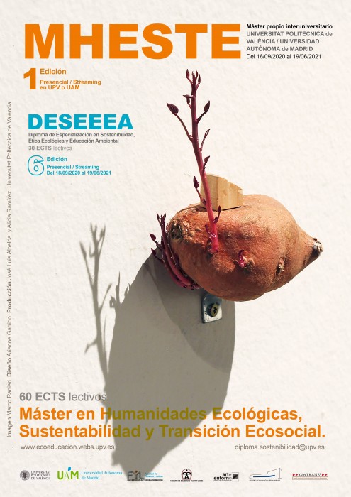 Son sobre todo la cultura y las instituciones humanas lo que ha de cambiar: nuestros valores éticos, nuestras formas de interpretar la realidad, nuestras prácticas artísticas, nuestras iniciativas políticas, nuestras relaciones económicas, nuestra manera de concebir la ciencia y la tecnología. Situados ante el abismo de un posible colapso ecosocial, necesitamos repensarlo casi todo. En el nuevo máster MHESTE que comenzará en septiembre de 2020 (construyendo sobre la sólida base del diploma DESEEEA, que simultáneamente comenzará su sexta edición), hemos logrado reunir a un plantel transdiciplinar de profesoras y profesores que nos parece inigualable para esta tarea. Dos instituciones educativas prestigiosas, como son la UPV y la UAM, unen fuerzas para proporcionar una formación teórica y práctica a la altura de los desafíos del presente.