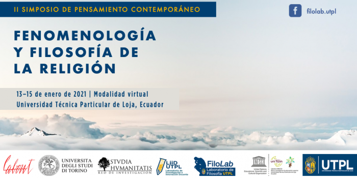 La Universidad Técnica Particular de Loja (UTPL), en colaboración con la Red de Investigación «Studia Humanitatis» y el Labont – Center for Ontology de la Universidad de Turín (Italia), invitan a profesores e investigadores interesados en el estudio sistemático e histórico de la religión a presentar contribuciones teóricas, históricas o metodológicas en el II Simposio de Pensamiento Contemporáneo «Fenomenología y Filosofía de la Religión» que se llevará en formato virtual entre el 13 y el 15 de enero de 2021, en la ciudad de Loja (Ecuador), con el objeto de estimular el desarrollo e intercambio de la investigación filosófica sobre la religión en Iberoamérica.