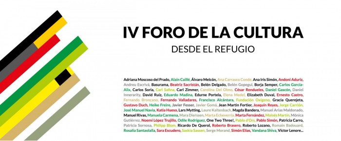 Arranca la cuarta edición del Foro de la Cultura «Desde el refugio», programando una serie de encuentros online que puedes seguir a través del canal de YouTube, y ver libremente en español o en inglés desde el próximo 9 de noviembre y hasta el día 12. El Foro reúne cada año a profesionales de todo el mundo en un espacio de intercambio y reflexión que pretende interpretar nuestro presente y ofrecernos algunas pistas sobre el futuro que está por venir. Esta edición, el Foro de la Cultura quiere ser un espacio para ensayar un vocabulario futuro que nos permita observar el mundo desde la premisa de que no existen salidas ni alternativas posibles que no pasen por reconocer nuestra naturaleza social o nuestra posición ecodependiente en el planeta. Porque nuestro mundo es virus, pero es también ecosistemas tropicales y ciudades inteligentes, alimentación sostenible y ciencia climática.
