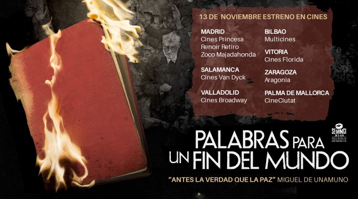 Imagine! Factory Films, Pantalla Partida y RTVE presentan la película documental “Palabras para un fin del mundo”, del director Manuel Menchón, que cuenta también con la participación de EiTB y el apoyo del Ayuntamiento de Salamanca, la Universidad de Salamanca, la Casa-Museo de Unamuno y Gogora Instituto de la Memoria, la Convivencia y los Derechos Humanos.
