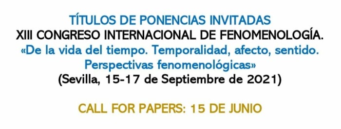 El XIII Congreso de la SEFE, «De la vida del tiempo. Temporalidad, afecto y sentido. Perspectivas fenomenológicas», se celebrará en Sevilla los días 15, 16 y 17 de septiembre.