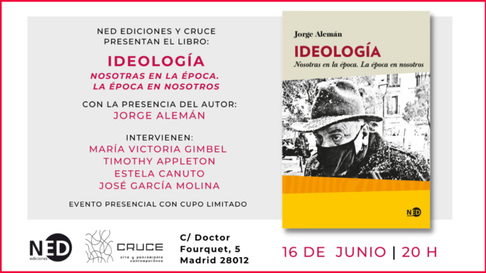 La siguiente cita para escuchar a Jorge Alemán, de forma presencial, será el miércoles 16 de junio, a las 20h, en CRUCE, en conversación con Mariví Gimbel, Tim Appleton, Estela Canuto y José García Molina. Aforo limitado.
