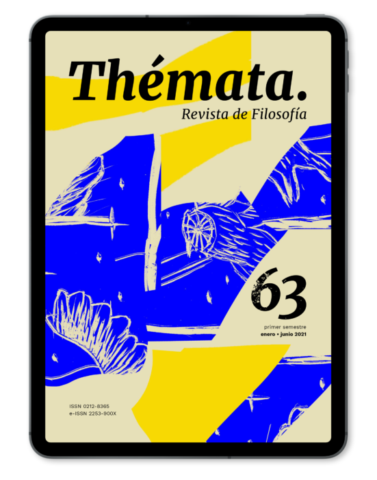 En su número 63, cuando se cumplen 37 años de la publicación de su primer volumen, Thémata estrena imagen, con cabecera, cubierta y maqueta nuevas. El proyecto gráfico pretende trascender la funcionalidad del diseño editorial y el estándar de las publicaciones científicas para aludir constantemente a la filosofía de Thémata, caracterizada tanto por la apertura a nuevos enfoques y rutas, en forma y en fondo, como por la puesta en crisis reflexiva y creativa de la normatividad académica.