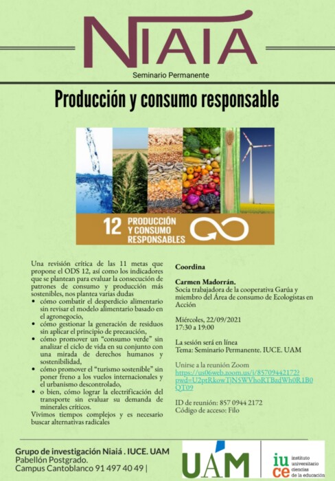 El grupo de investigación Niaiá, con el apoyo del IUCE, abre la primera sesión del seminario Permanente del curso 2021-2022, que tiene el título general de Problemas centrales de la Agenda 2030
