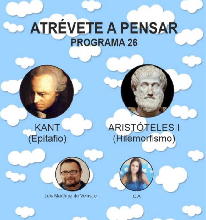 está abierto a la participación (atreveteapensarradio@gmail.com). El enlace del programa emitido el pasado 6 de octubre, dedicado a Kant (Epitafio) y Aristóteles (Hilemorfismo) es el siguiente: