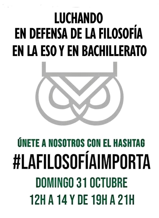 A lo largo del domingo 31 de octubre, de 12 a 14h y de 19 a 21h, la REF invita a unirse a la campaña por la presencia de la filosofía en la ESO en redes, con el hashtag #LaFilosofíaImporta