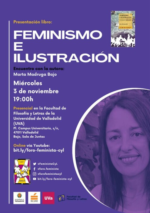 La presentación del libro «Feminismo e Ilustración» tendrá lugar el día 3 de noviembre a las 19:00, en la Facultad de Filosofía y Letras de la Universidad de Valladolid. Contará con la presencia de Marta Madruga Bajo, autora. También podrá seguirse en formato online, a través del siguiente enlace: Foro Feminista de Castilla y León – YouTube