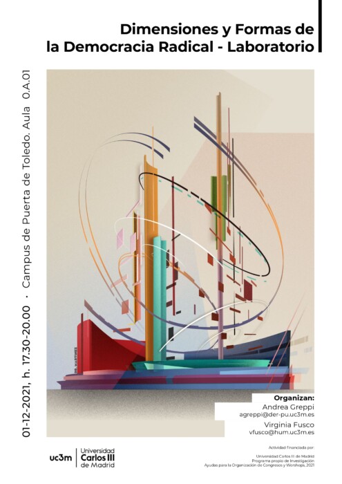 El laboratorio ‘Dimensiones y Formas de la Democracia Radical’. está organizado por Andrea Greppi y Virginia Fusco. El encuentro, en el que participa un conjunto de investigadores, se celebrará en el campus de Puerta de Toledo de la UC3M, el 1 de diciembre a partir de las 17.30 en el aula 0.A.01.