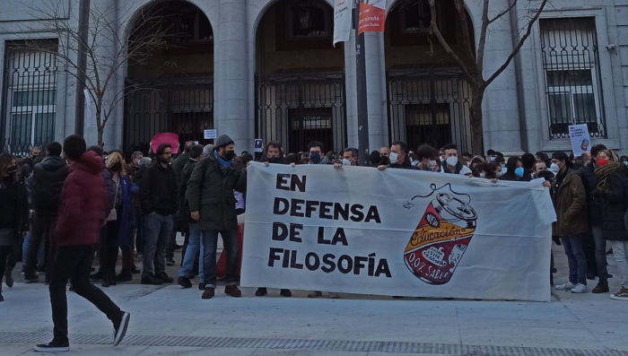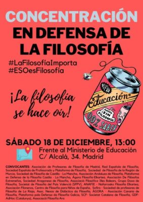 El pasado 18 de diciembre, diversas asociaciones filosóficas de toda España se dieron cita en Madrid, frente al Ministerio de Educación, para reivindicar una presencia justa y equilibrada de nuestra disciplina dentro del sistema educativo.
