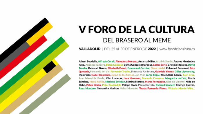 Desde el día 7 de enero ya se puede adquirir entradas en las taquillas del Teatro Calderón (gratuita) o en la web del Teatro Calderón (entrada gratuita, coste de gestión 1,20€) para el V Foro de la Cultura. El coliseo vallisoletano reunirá del viernes 28 de enero al domingo 30 a una veintena de figuras nacionales e internacionales como Gilles Lipovetsky, Philipp Blom, Peter Sloterdijk, Manuela Carmena, Elizabeth Duval, Albert Boadella o Margarita del Val, entre otros.