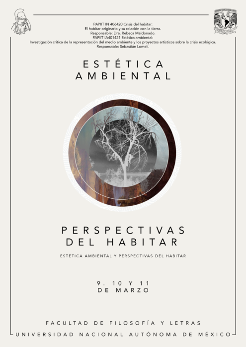Durante los próximos días 9, 10 y 11 de marzo tendrá lugar el Congreso Internacional “Perspectivas del Habitar. Estética Ambiental y Perspectivas del Habitar”, organizado por los Proyectos de Investigación: “Crisis del habitar: El habitar originario y su relación con la tierra”, cuya Investigadora Principal es Rebeca Maldonado (UNAM-México, Coordinadora Internacional de HERCRITIA en México), y “Estética ambiental: Investigación crítica de la representación del medio ambiente y los proyectos artísticos sobre la crisis ecológica”, cuyo Investigador Principal es Sebastián Lomelí (UNAM-México, miembro investigador de HERCRITIA).