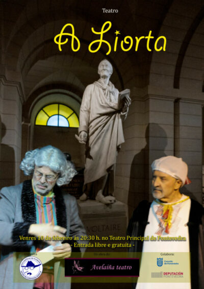 En el marco de las actividades conmemorativas del 40 aniversario del Aula Castelao de Filosofía, nuestra entidad organiza la puesta en escena en Pontevedra de la obra «A Liorta» de Avelaíña Teatro el próximo viernes 10 de febrero a las 20:30 horas en el Teatro Principal. La entrada será libre y gratuita.