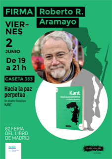 D) Firma en la Feria del Libro de Madrid (Retiro, caseta 333 de Plaza y Valdés) de los libros de Javier Echeverría (Leibniz, el Archifilósofo) y Roberto R. Aramayo (Hacia la paz perpetua. Un diseños filosófico). Se adjuntan también Carteles para difundir.