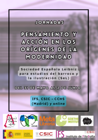 El Instituto de Filosofía, la  Sociedad Española Leibniz, el Instituto Goethe, MetaLibrería y la editorial Plaza y Valdés  os invitan a participar en las Jornadas «Pensamiento y acción en los orígenes de la modernidad», que tendrán lugar entre el próximo miércoles 31 de mayo y el 2 de junio.