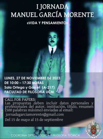 27 de noviembre: I Jornada Manuel García Morente: “Vida y Pensamiento” en Sala Ortega y Gasset (A-217) de la Facultad de Filosofía de la UCM.