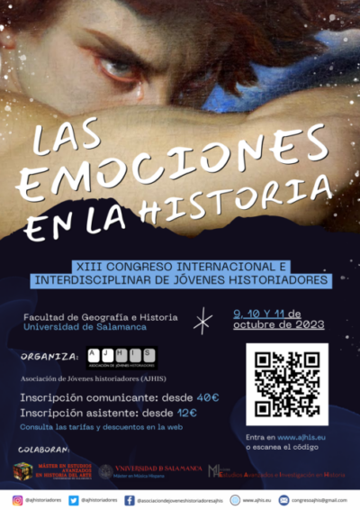 El XIII Congreso Internacional e Interdisciplinar de Jóvenes Historiadores «Las emociones en la Historia» organizado por la Asociación de Jóvenes Historiadores (AJHIS) tendrá lugar del 9 al 11 de octubre de 2023 en la Facultad de Geografía e Historia en la Universidad de Salamanca.