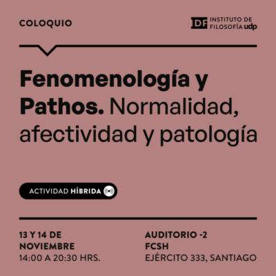 Los próximos días 13 y 14 de noviembre tendrá lugar el coloquio internacional “Fenomenología y Pathos. Normalidad, afectividad y patología” en el Instituto de Filosofía de la Universidad Diego Portales (Santiago de Chile).